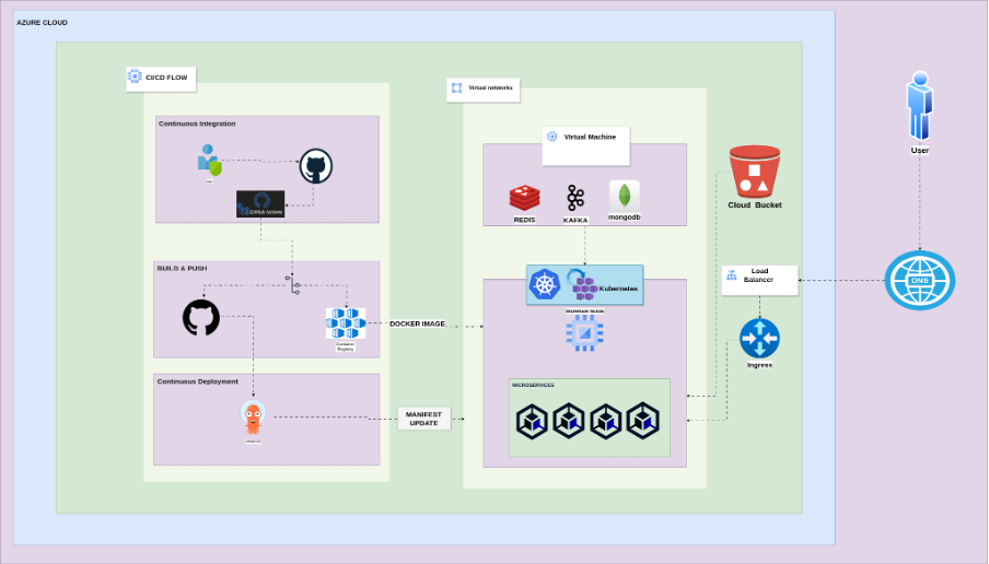● Description: The Kubernetes cluster will be deployed on Azure Kubernetes Service (AKS) for scalable container management. AKS ensures high availability, automated updates, and robust security. The cluster will span multiple availability zones for fault tolerance, with auto-scaling to adjust nodes based on demand
