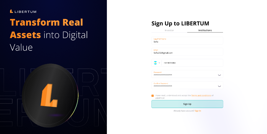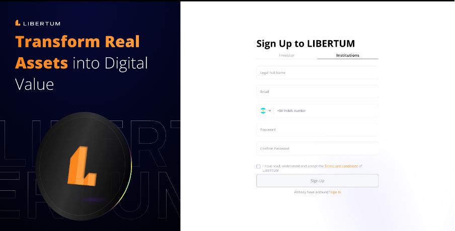 FR:026 The user must click on the “Sign-in” button to sign in the Libertum platform post entering all the details in the requested fields.