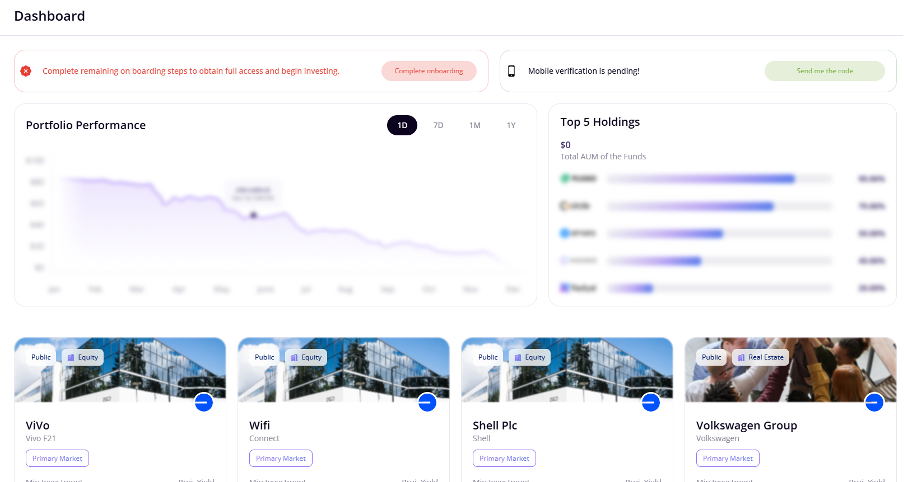 FR:040 The “Top 5 Holdings” depicts the $ value of a particular user’s top 5 holdings. It will be enabled post KYB is completed and the Investor has invested in one or more holdings.