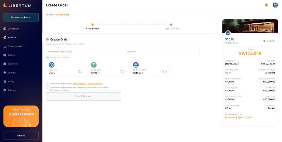 The “Convert” section enables the investors to convert the tokens from the ERC-3643 standard to the wrapped ERC-20 standard, so that they can easily trade the ERC-20 tokens on centralized (CEX) or decentralized exchanges (DEX).