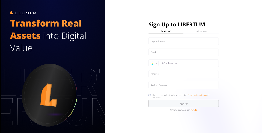 FR:025 The Investor should click on the “Sign up” button in case they do not have an account on the Libertum platform and wish to register themselves.