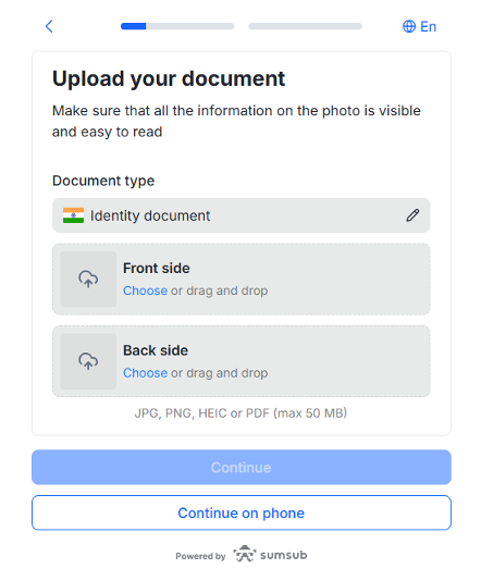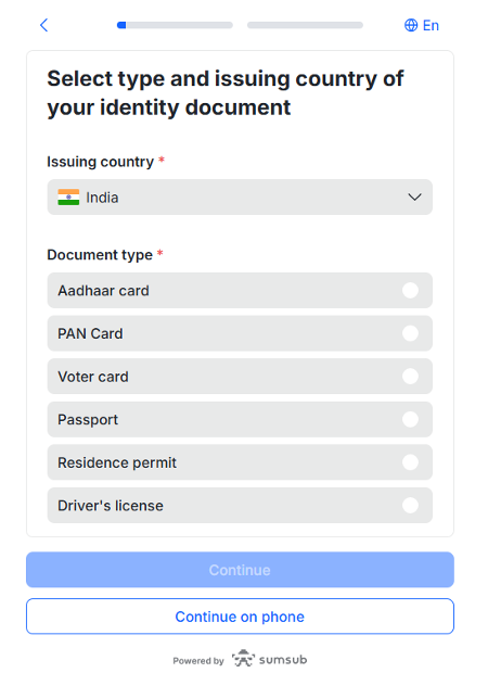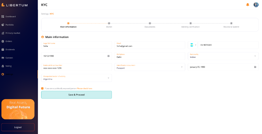 This section is non editable and only allow users to view the information/details submitted by them at the time of KYC to Sumsub, which are as follows-