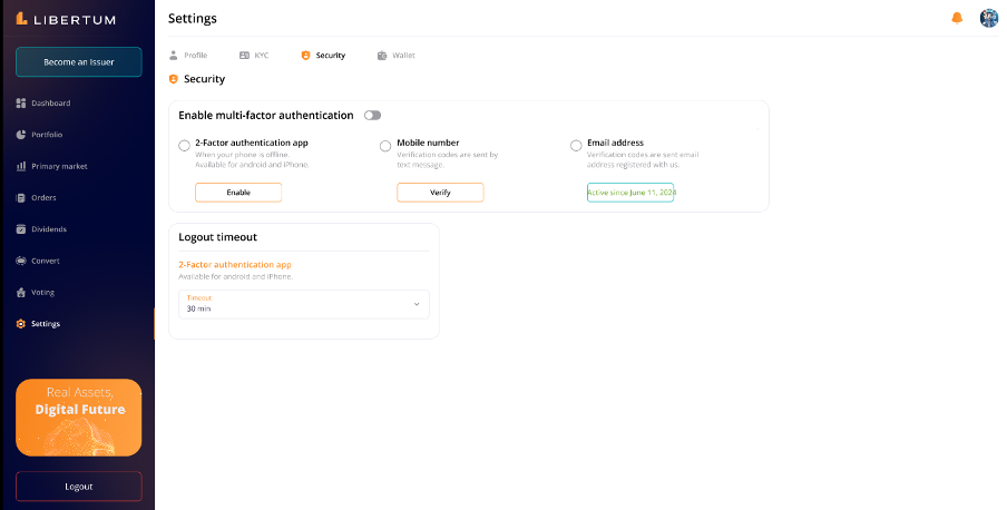 The “Convert” section enables the investors to convert the tokens from the ERC-3643 standard to the wrapped ERC-20 standard, so that they can easily trade the ERC-20 tokens on centralized (CEX) or decentralized exchanges (DEX).