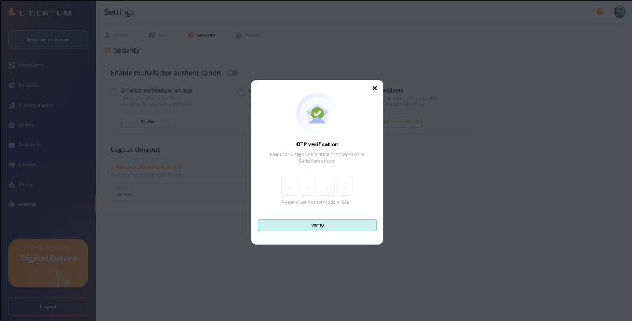 FR:021 The Investor must enter either their registered email address or Phone number to Sign-in to the Libertum platform. This field will follow the following guidelines-